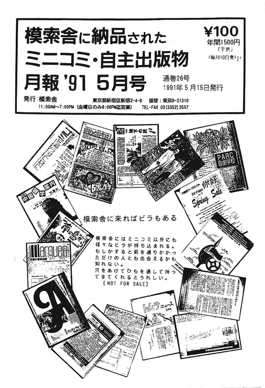 『模索舎月報』26号(1991年5月15日発行)。納品される全ての出版物の情報を月刊で届けた。ミニコミ・自主出版物には全点、納品者自身による解説が付けられた。