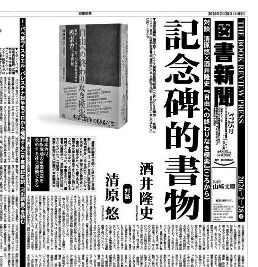 2026/03/09 13:01◉図書新聞 酒井隆史・清原悠対談掲載号を通信販売します。『自由への終わりなき模索』編著者・清原悠と、酒井隆史氏による対談「記念碑的書物」が掲載された『図書新聞』2月28日号(3725号)を通信販売します。この対談は、1面〜3面にわたる特集として掲載されたもの。本書と模索舎の歴史を、「社会運動」「社会的実践」という視点から深く掘り下げた、非常に読み応えのある内容になっています。送料込み500円。以下のフォームからお申し込みください。→ ★以下に発言の一部を紹介します。本書や模索舎への理解が深まるとともに、社会運動や実践について考える多くのヒントに満ちた対談です。酒井隆史◉驚くべきは、本書に収録されたインタビューも素晴らしいのですが、資料の収集や細かい年表の充実ぶりです。歴史が漏らさず再構築されている。清原悠◉私は社会運動研究とメディア研究をテーマにしていますが、それらが重なり合う対象はあまりありません。どっちがメインで、どちらかがサブにしかならない。しかし模索舎はその二つがちょうど重なるのです。出版流通というメディアそのものを改革する社会運動。これをはずして他に研究するテーマがあるだろうかと思いました。酒井隆史◉模索舎舎員だった永井迅(一九五五~二〇二三)さんへの追悼文は、本当に素晴らしかったです。[中略]この文章によって自分が考えるノンセクト・ラディカルとは永井さんのことだと感じたんですよね。「具体」を決して離れない。具体を離れるとロクなことがないとわかっている。抽象的なことを考えるときも具体を介在させる。一般論から入らない。具体的な課題から離れた実践はしない。ぜひ「紙」で読んでいただきたい対談です。是非お申し込みください。◉雑誌「地平」に書評掲載「地平」2026年4月号の酒井隆史さんの書評「不穏当な希望——自由への模索は終わりがない」で、レベッカ・ソルニット『暗闇のなかの希望』とともに『自由への終わりなき模索』が取り上げられています。図書新聞の対談とあわせて読むと、理解がより深まること請け合い。必読の書評です。もし日本の一九六八年の核心のひとつを「ノンセクト・ラディカル」におくとするなら、まちがいなく本書がベスト中のベストである。※集団作業を通して自由を構築しようとするその試行錯誤と、不可避に発生してしまうヒエラルキー構造をはじめさまざまな矛盾に対応するなかで生まれる当事者たちの思考、それは可能性の宝庫だといっていい。つまり本書は、世代を超えても、その内実は変化していても、可能性の地平にはたらきかけ、それを拡大しようとする人たちの記録でもある。特集は「社会運動から再起動する」と「大震災15年」。読み応えのある一冊です。是非書店で手にとってください。 もっと見る