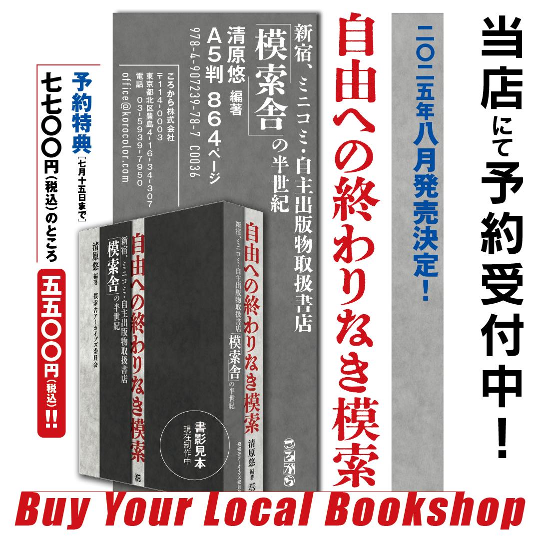 そのため、頒価は税込7,700円と高額になっておりますが、ご負担を少しでも軽減できるよう、予約販売では特別価格をご用意しています。模索舎をはじめとする特約書店では、税込5,500円でご購入いただけます。