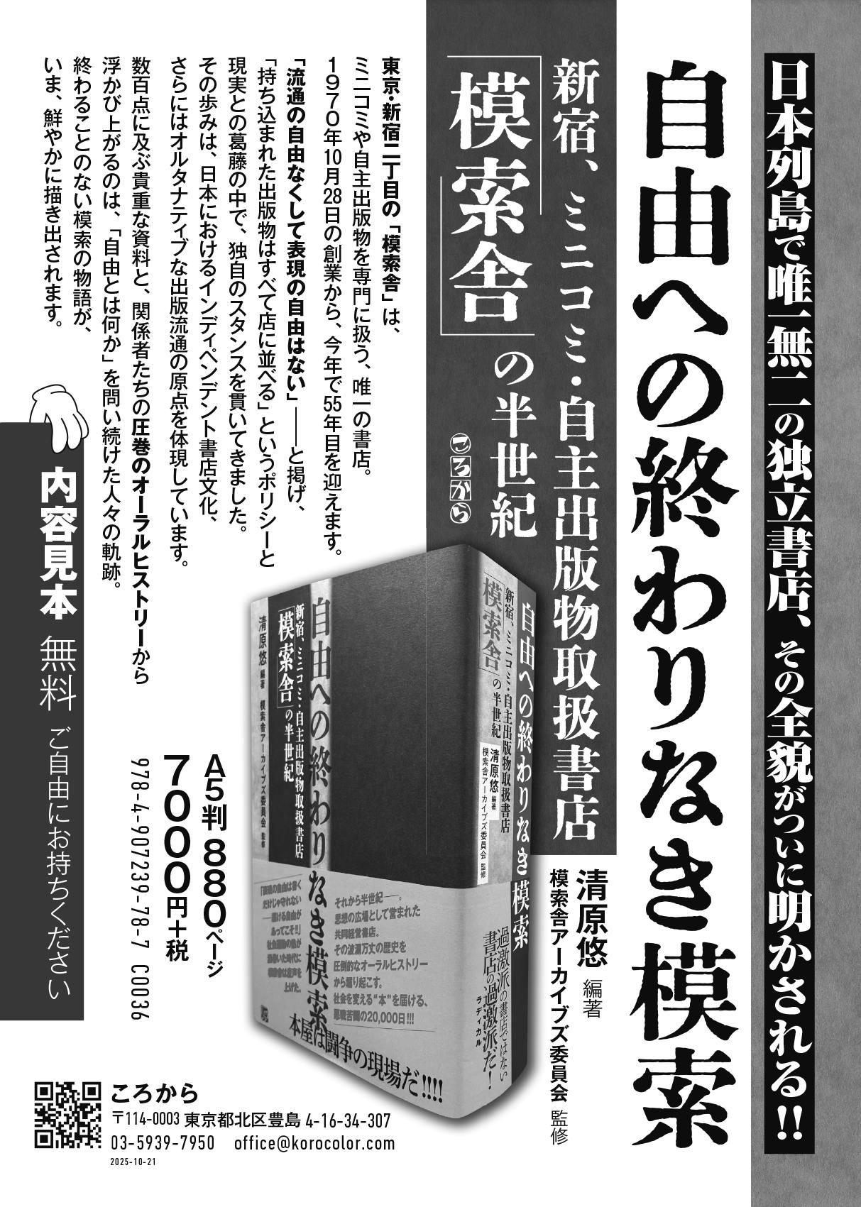 模索舎をはじめ、予約販売書店などで配布予定です。