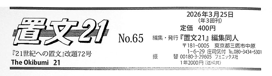 『置文21』65号(発行:『置文』同人)にて、書評が掲載されました。