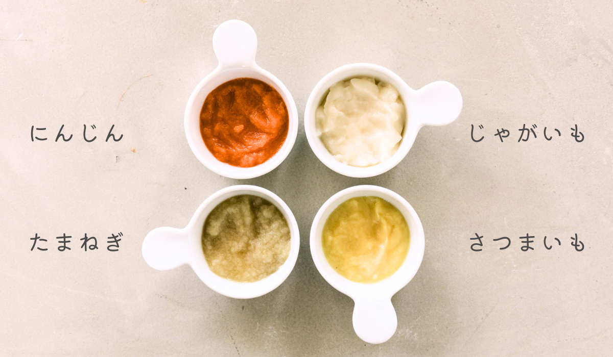 野菜ペーストは、にんじん/さつまいも/たまねぎ/じゃがいもの計4種類をご用意しました。