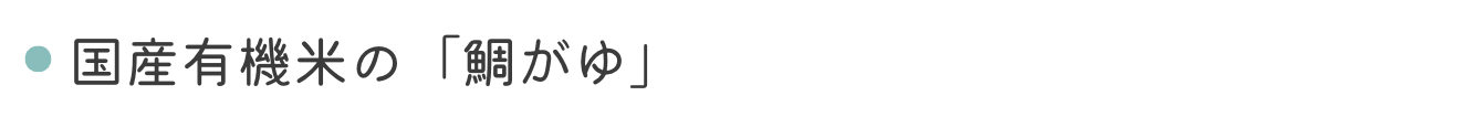 国産天然鯛の身をほぐして使用しています。鯛の旨味をぎゅっとおかゆに閉じ込めているので、パックから出した瞬間に「鯛」を感じていただけます。こちらのおかゆも、もちろん国産の有機米を使用しています。
