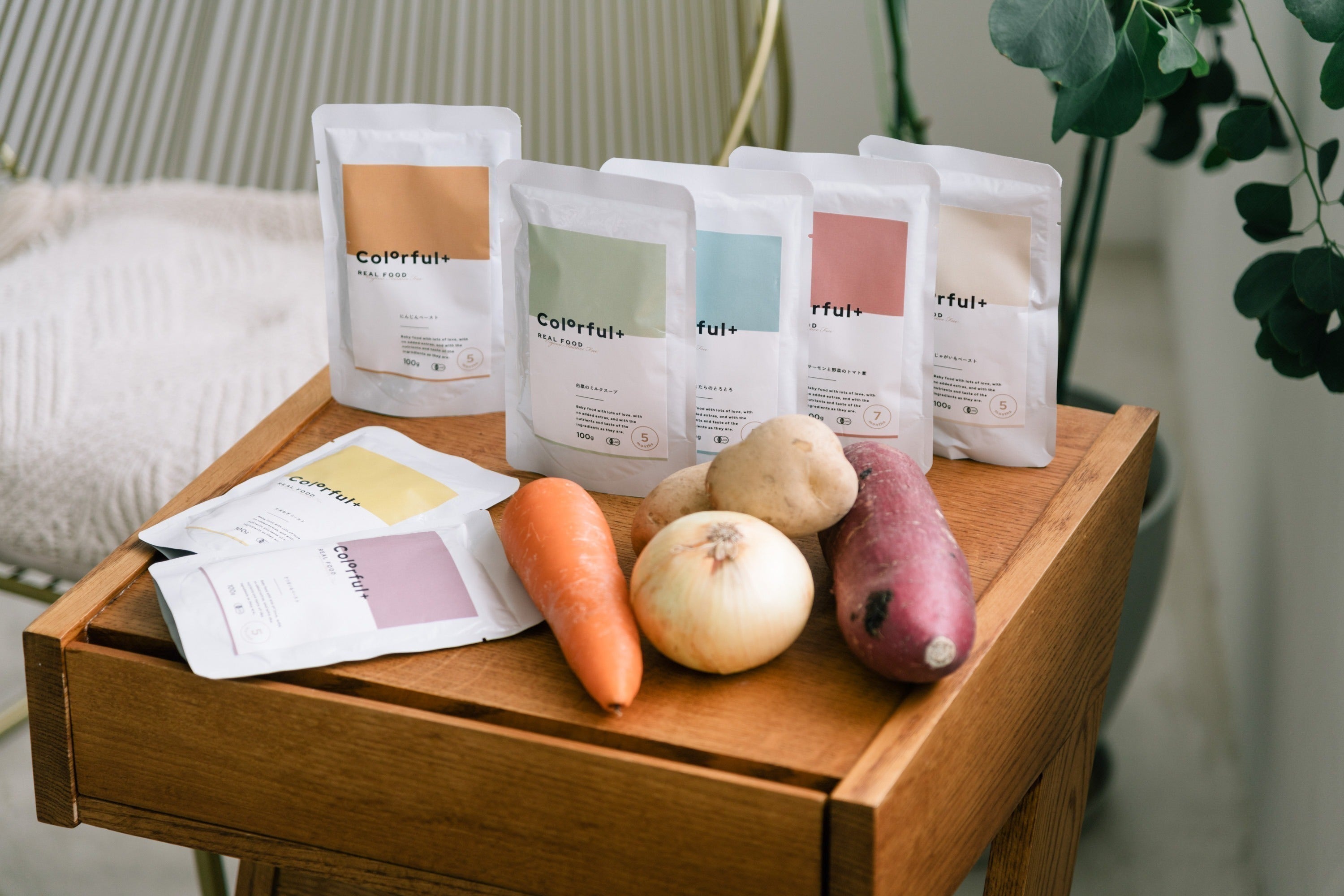 パッケージはColorful+の名の通り、野菜の色やおかゆ、魚肉などジャンルごとに色を分けて色彩豊かに仕上げています。