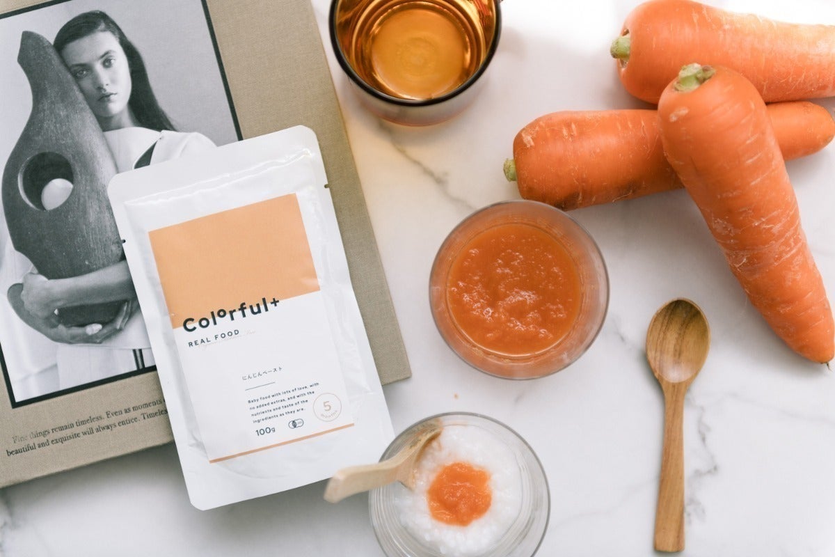 オーガニック野菜を使い、無添加であかちゃんにとって優しいたべもの。これがColorful+が提案する「あかちゃんのためのリアルフード」です。