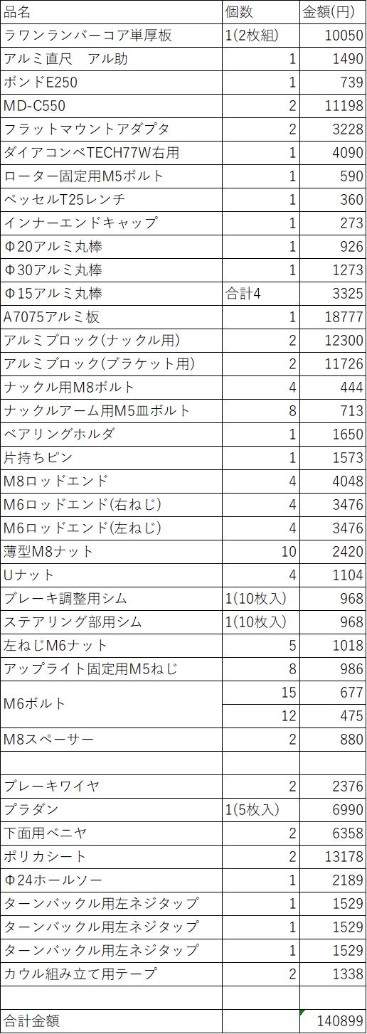 マシン製作費内訳
