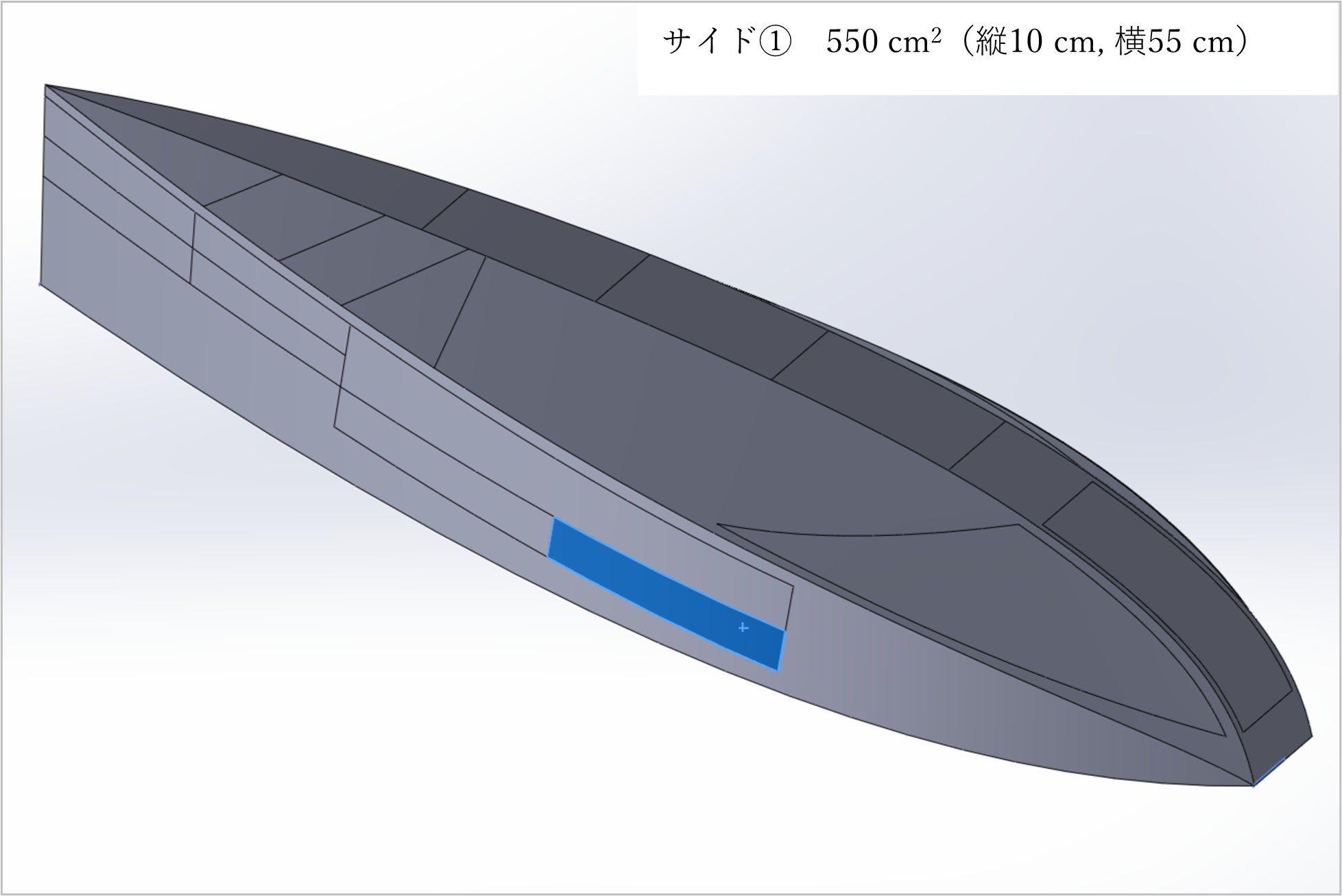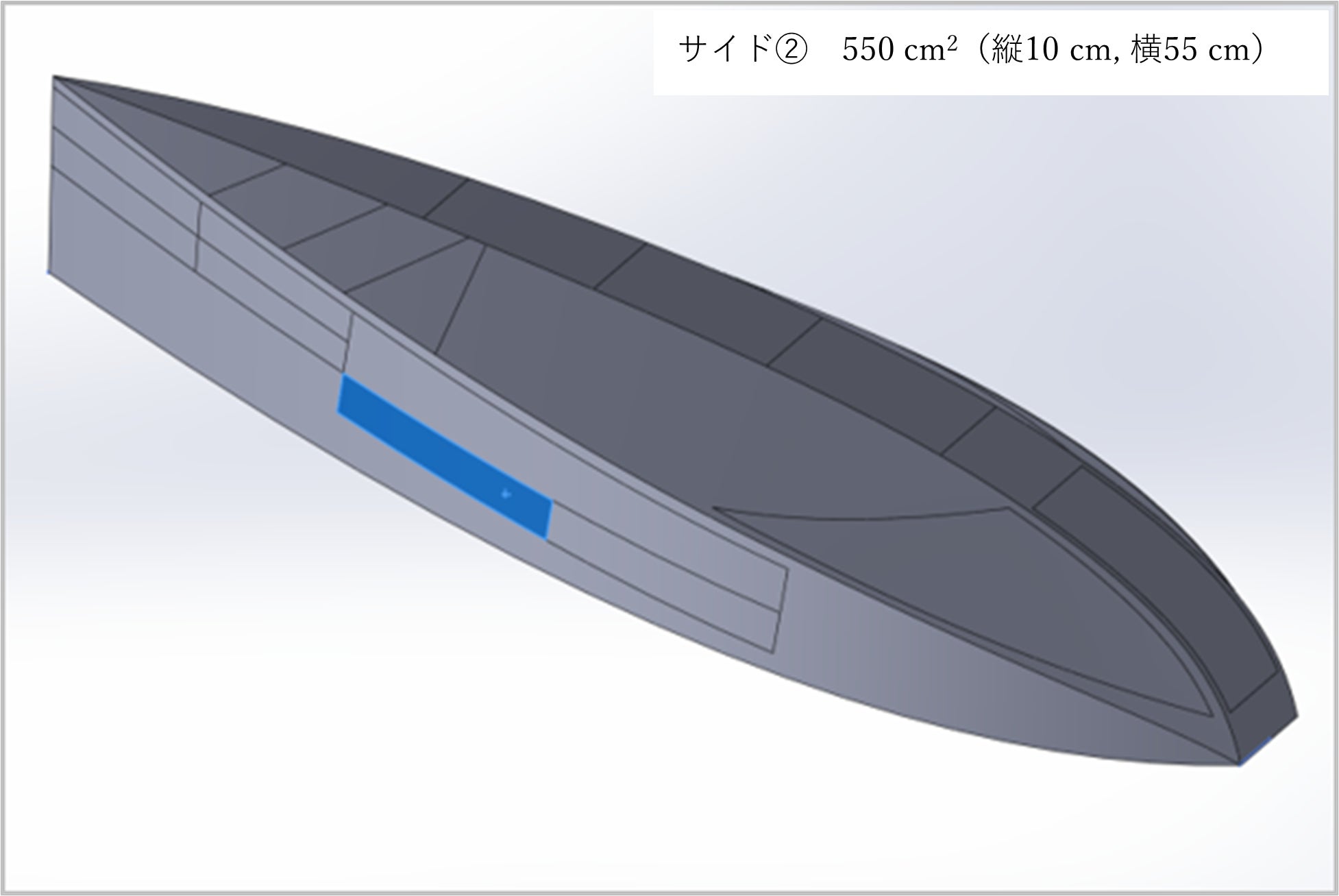 片面大きさ:縦10 cm, 横55 cm, 面積約550c㎡