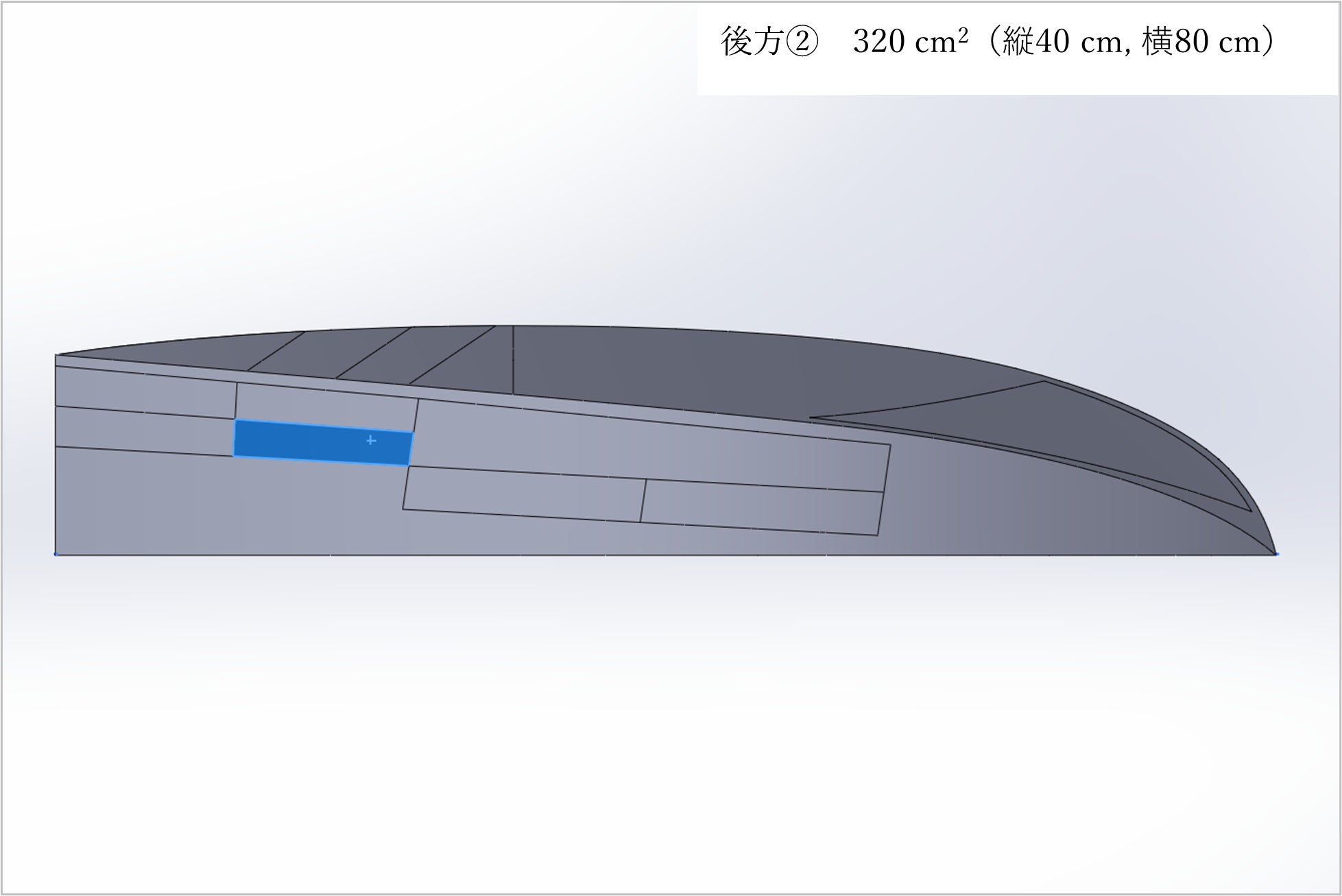 片面大きさ:縦40 cm, 横80 cm , 面積約320 c㎡