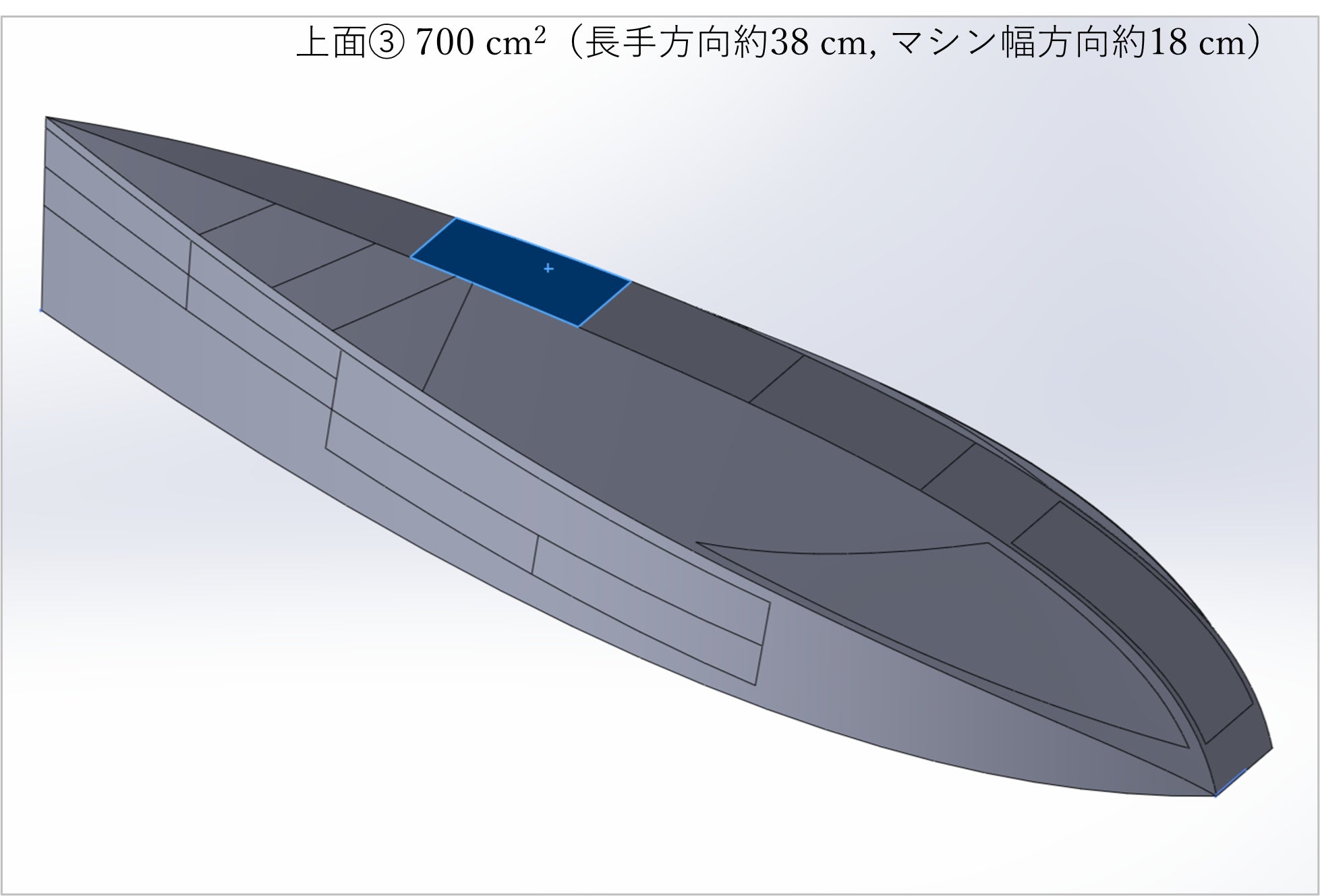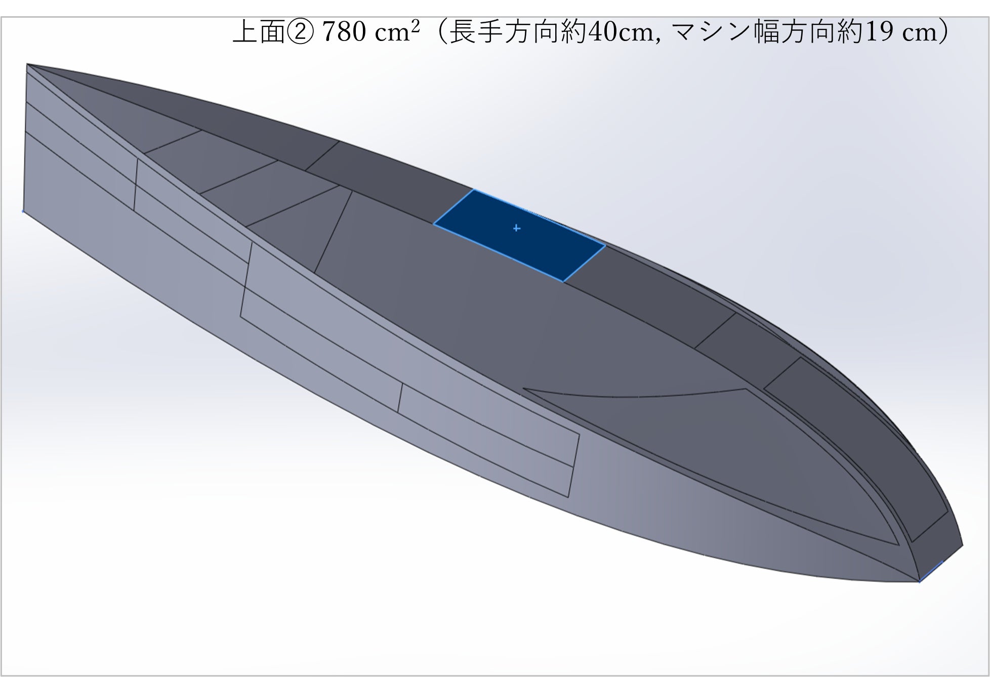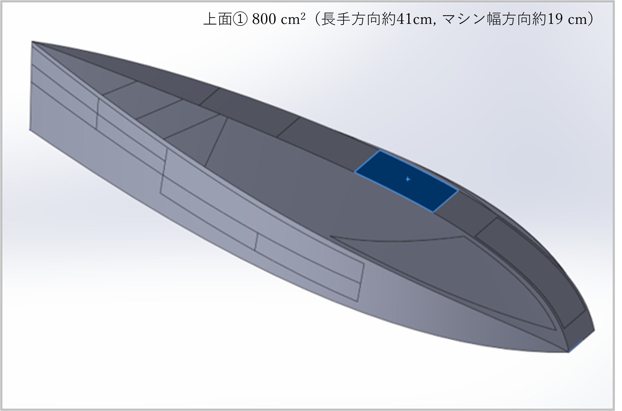 大きさ:長手方向約40 cm, マシン幅方向約19 cm , 面積約780 c㎡