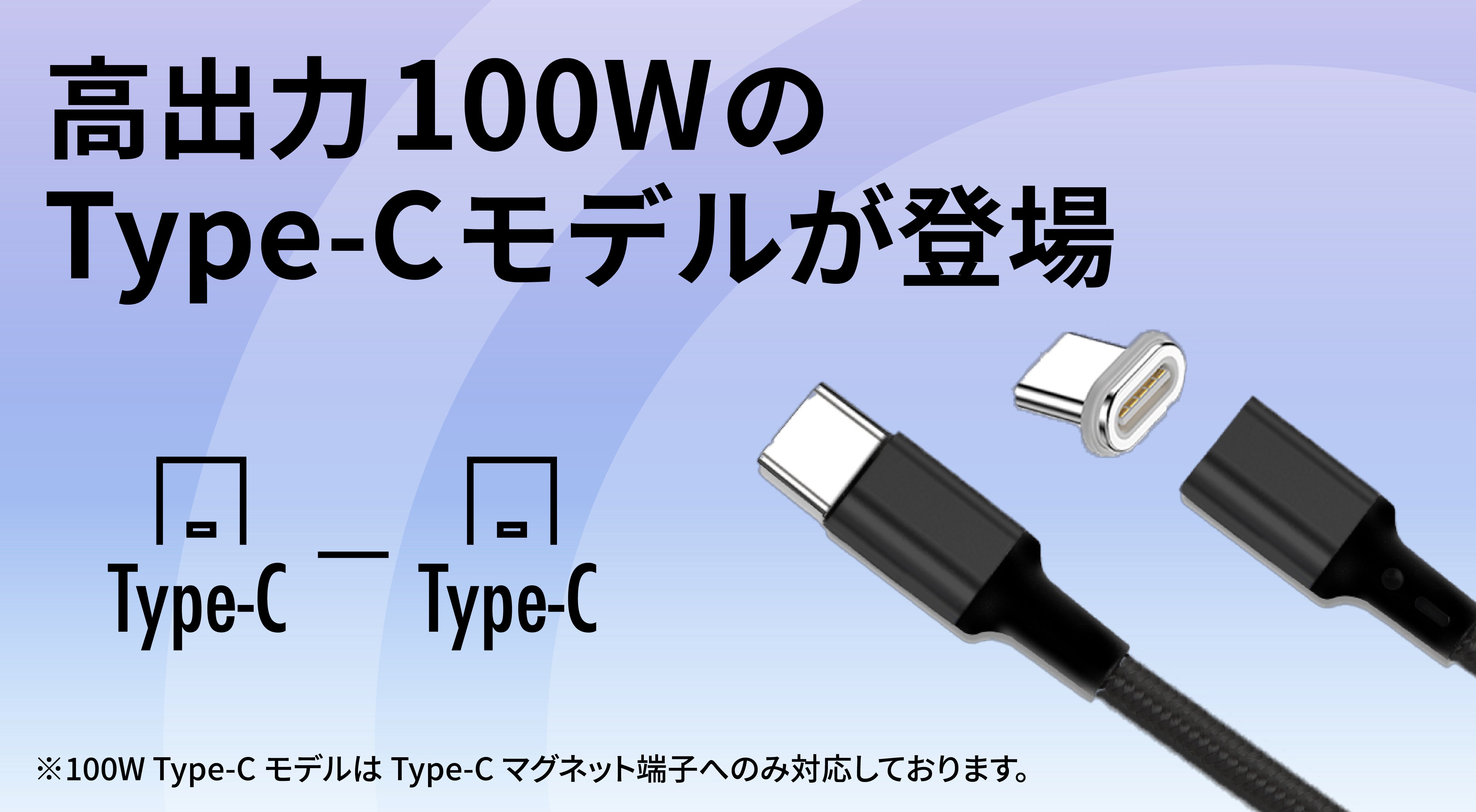 ※100W Type-CモデルはType-Cマグネット端子へのみ対応しております。