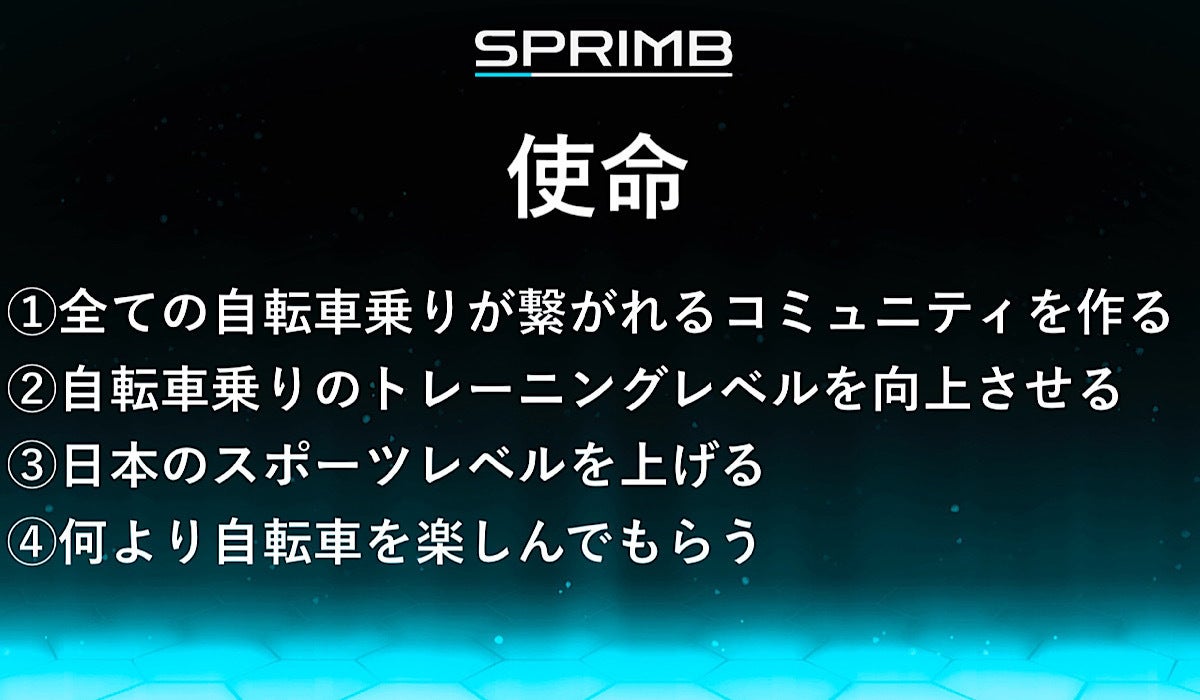 それに準じて、SPRIMBは「全ての自転車乗りに安心感と集いの場を」をテーマに始動します。皆様にとって自転車に乗る、またはエクササイズをする時間の1ページをSPRIMBにサポートさせてください!