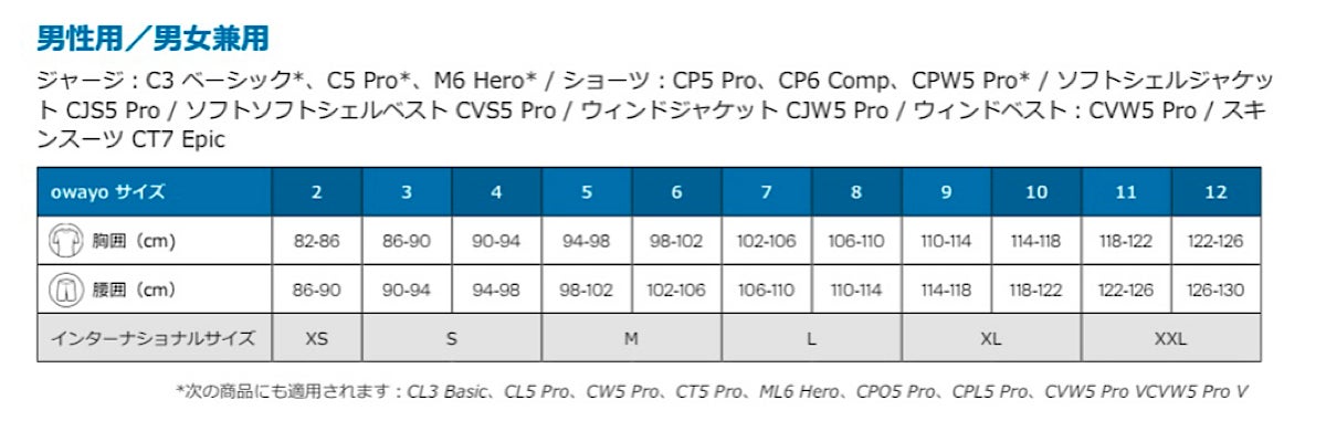 メンズ、もしくはユニセックスのウェア(ウィンドベストやウィンドジャケット)は上記を参照してください。XSサイズ以外はハーフサイズが存在しますので、備考欄にご記入の際は【XL】ではなく、【9】または【10】とご記入の上ご支援いただければ幸いです。