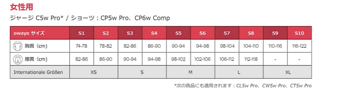 支援者の方が女性の場合、上記を参考にしてください。こちらに関してもハーフサイズが存在いたしますので、【M】ではなく【S5】または【S6】といったご自身にベストなサイズでのご記入をお願いいたします。