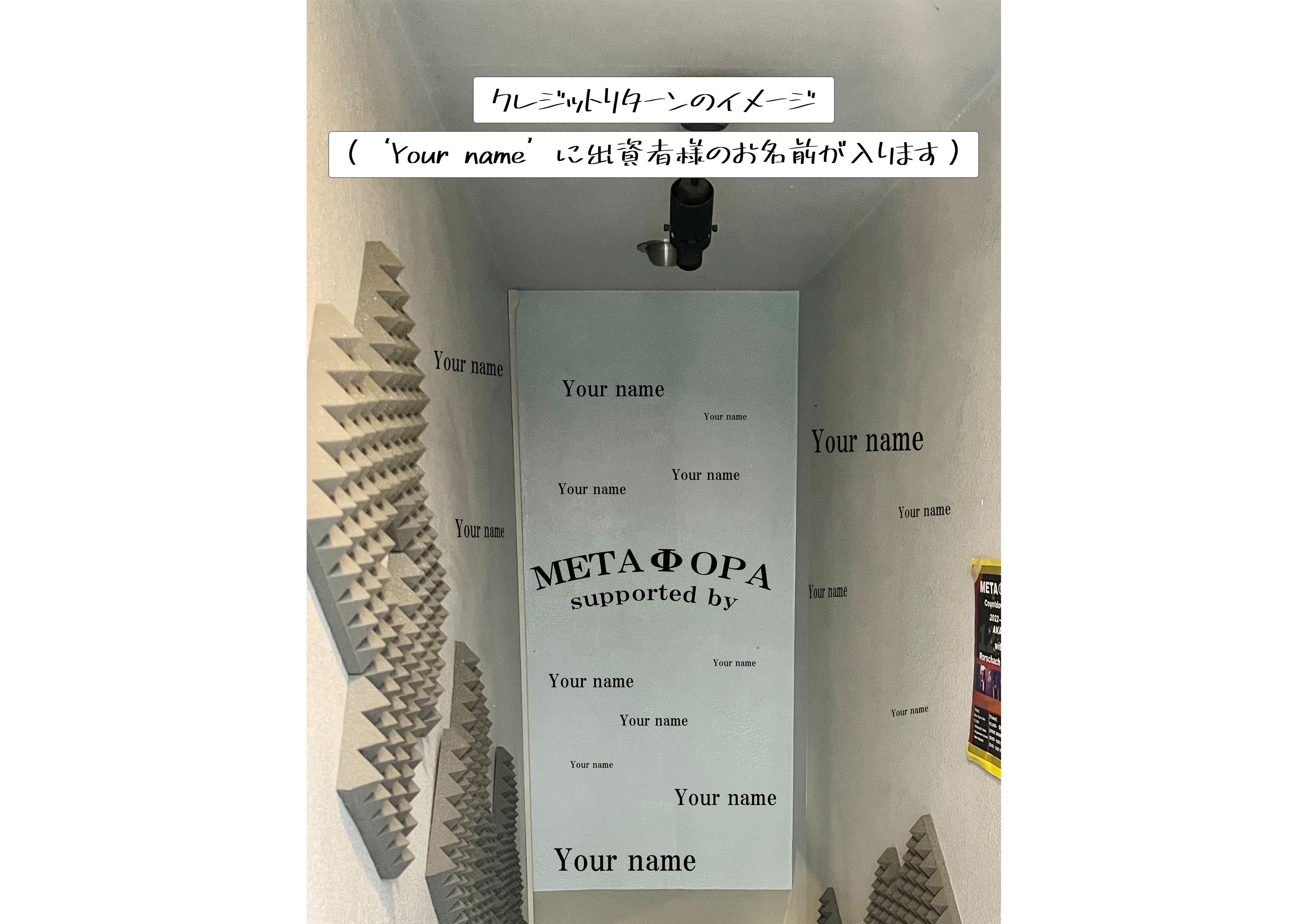メタフォラのクレジットリターンは、ウォールステッカーを使用し、入口階段の壁に貼る予定です。