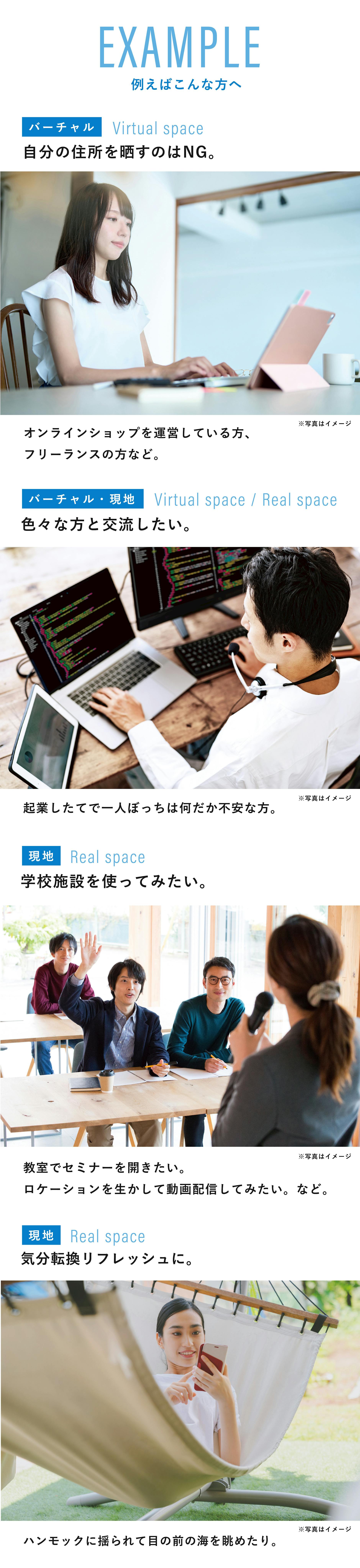 ※バーチャルオフィスは住所利用と仮想空間利用の両方の提供を予定しております。
