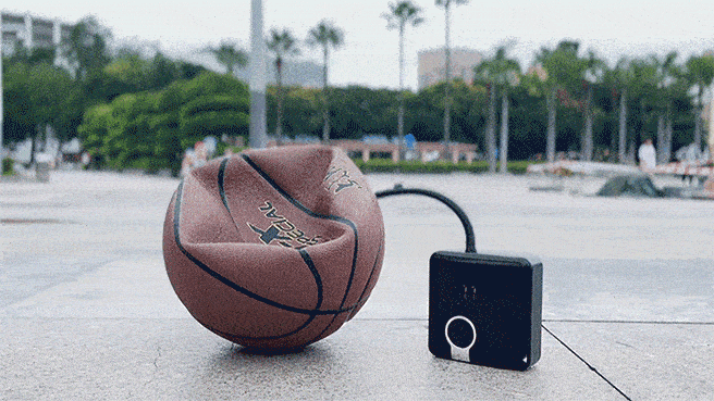 TP03は1800mAhバッテリー二つを内蔵しており、約30秒でバスケットボールを0Psiからフル充填(8Psi)、10インチの電動自転車タイヤは約18秒で0Psiからフル充填(12.5Psi)することが可能。