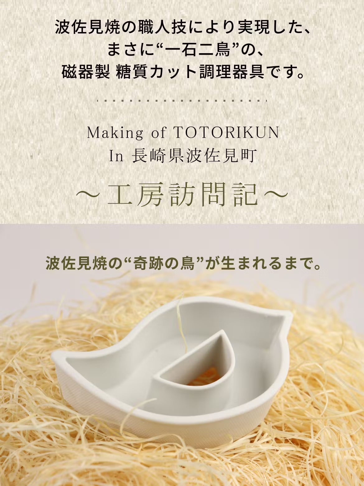 今回はその取り組みの一環として、「糖質カット磁器調理器 糖とりくん」の開発を、佐賀県有田の陶磁器屋さんと波佐見焼の窯元さんのご協力を頂きながら進めています。(毎日)無理なく、(お財布)に負担なく、毎日の生活に糖質制限を取り入れて頂くための、私たちのプロジェクトに是非お力添え頂ければと思います!