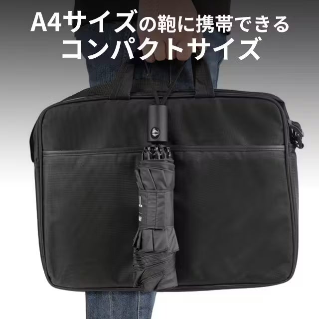 そこで、ワンタッチ開閉・逆折り機構・撥水加工・纏めやすい帯といった機能を満たしつつ、毎日持ち歩いても邪魔にならないようにA4サイズのカバンに収まるサイズの高機能傘を開発しました。