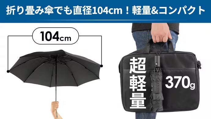 軽量コンパクトでありながら、広げると直径104cmのビッグサイズ。