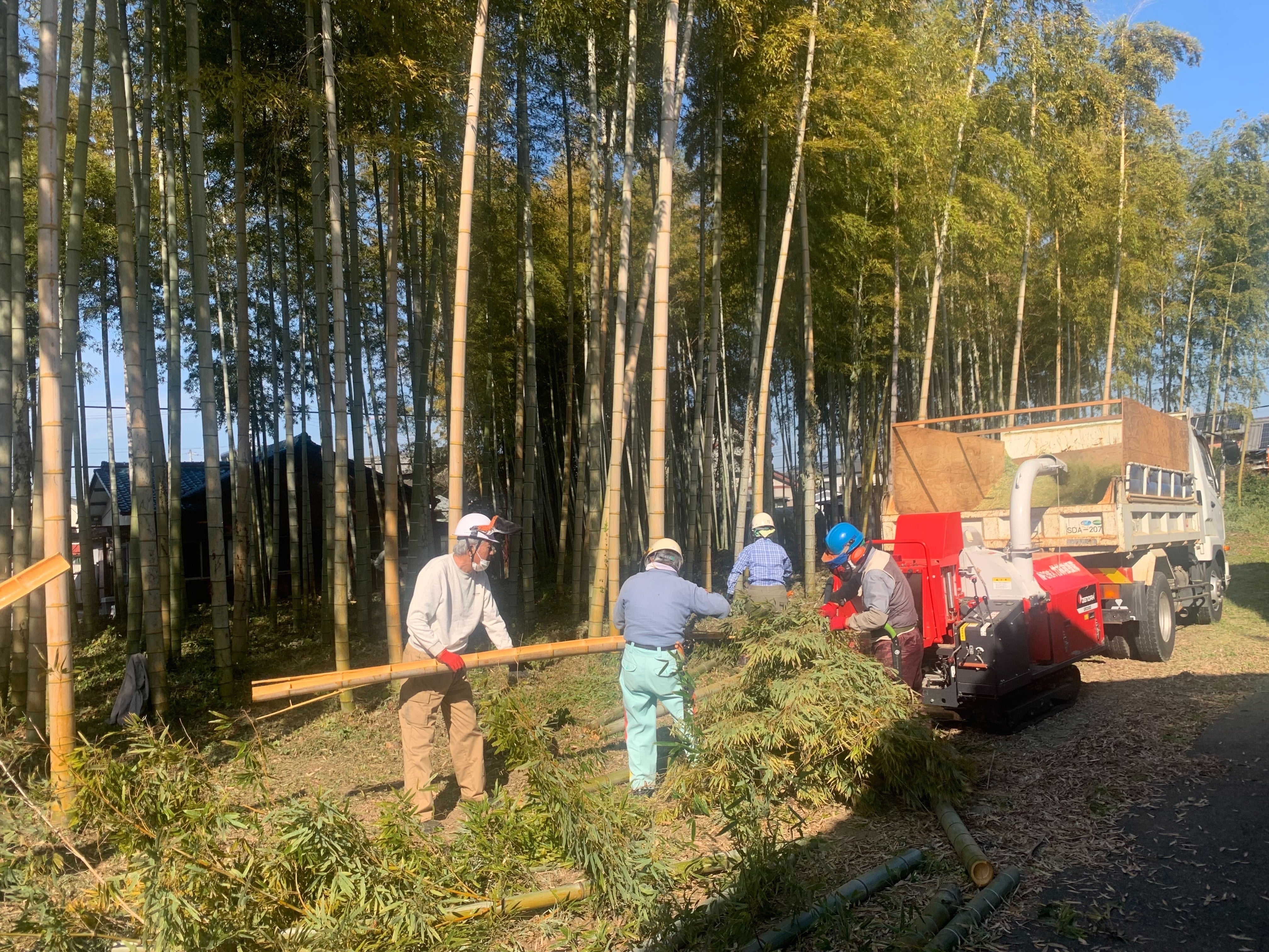 ○竹チップを混ぜる・運ぶ・詰める作業は
