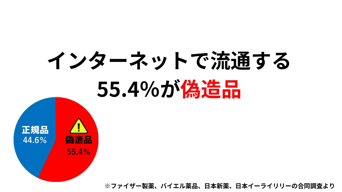 インターネットでの個人輸入が手軽におこなえるようになり、海外から安価でほしい商品を手に入れることが可能になりました。しかし、その中には偽造品も数多く流通しており、厚生労働省も正確な実態は把握しきれていない状態です。ファイザー製薬、バイエル薬品、日本新薬、日本イーライリリーの4社が合同で調査(※1)を行ったところ、国内のインターネットで流通しているED治療薬の55.4%が偽造医薬品であることが判明しました。