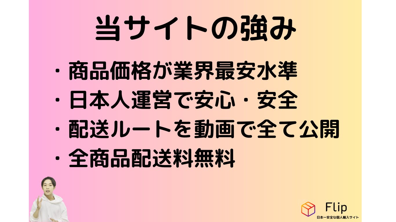 日本一安心・安全な個人輸入代行サイトの実現に皆様のご支援を心よりお願い致します。