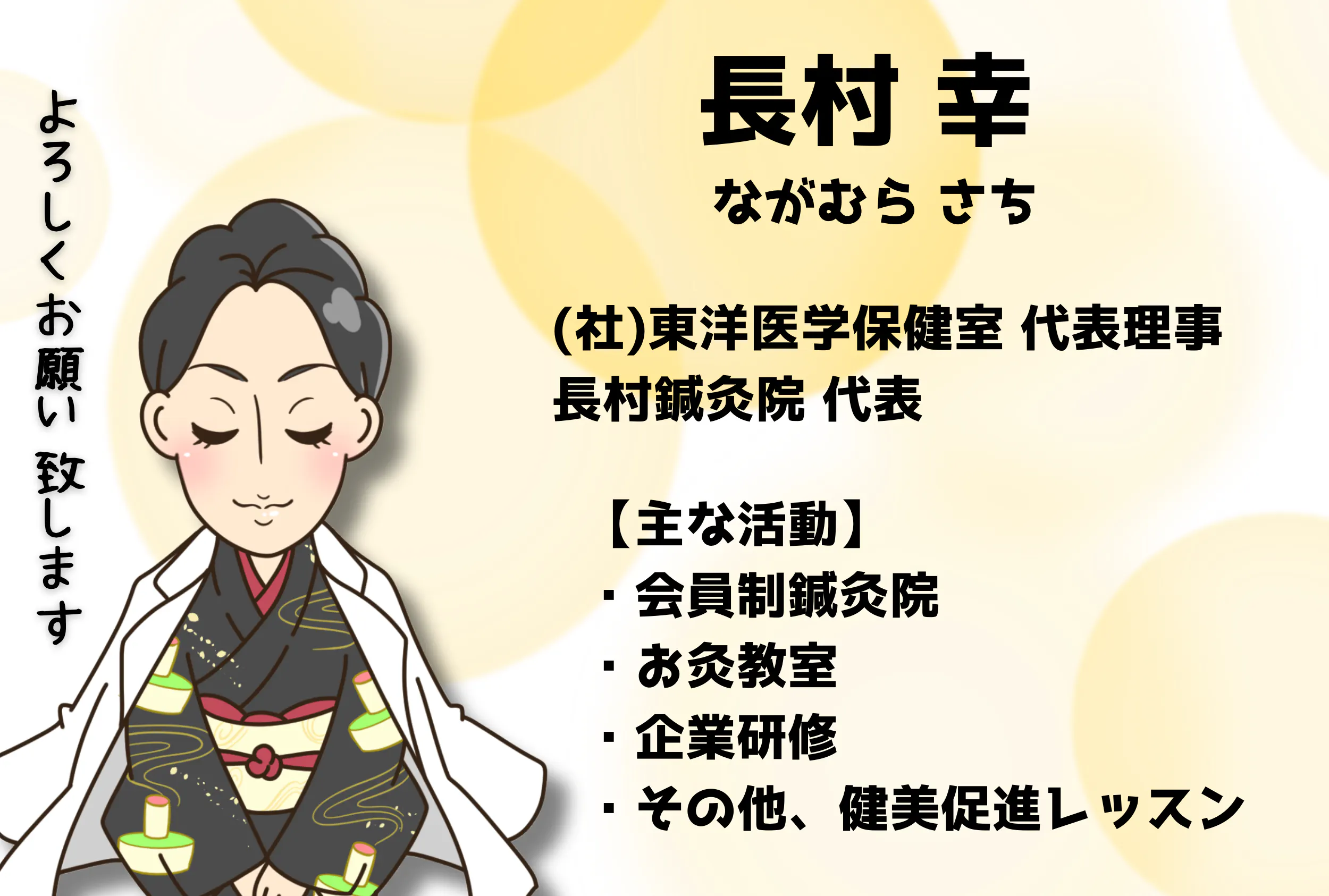 一般社団法人東洋医学保健室/長村鍼灸院代表の長村幸と申します。