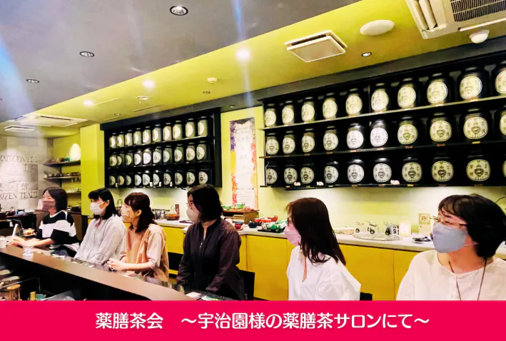 茶の名店「宇治園」様とのコラボイベント。薬膳茶とお灸であなたの肩こりの原因を探り、必要な薬膳茶とツボを見つけます。60種の薬膳茶に囲まれた贅沢な空間もお楽しみください。