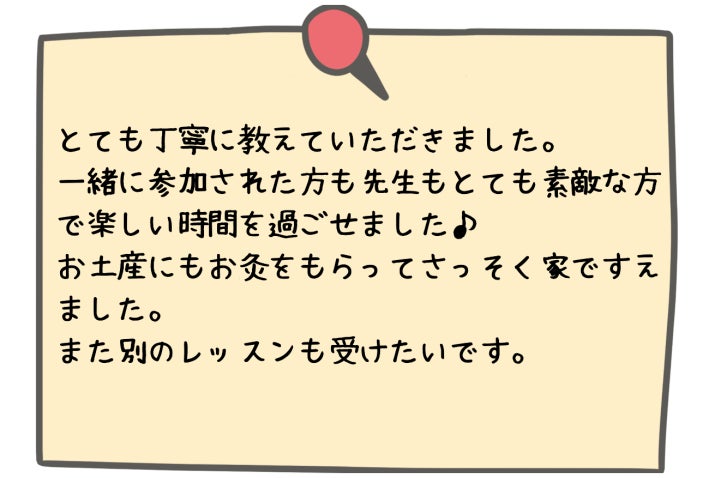 メインのお灸教室(1レッスン1,650円)ご参加後のアンケートでは「安すぎます!」とのコメントを沢山いただきます。