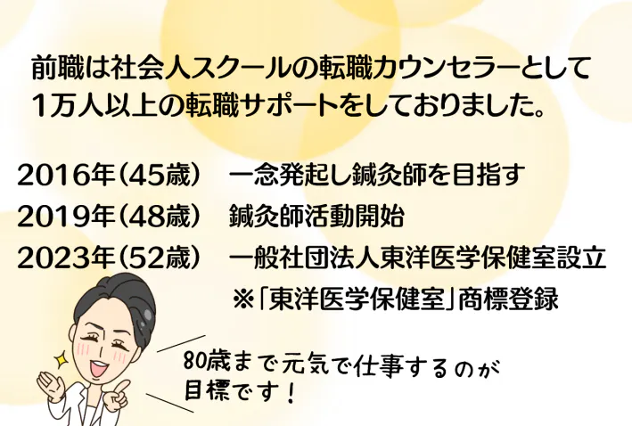 現在52歳、鍼灸師歴5年目となります。