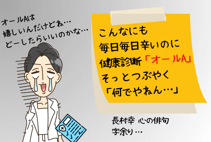 荒れ狂う感情と、理由のわからない不調に悶絶。しかし、こんな状態にも関わらす健康診断を受けるとオールAなんです。安堵ながらの「なんでやねん」と声に出る状況でした。