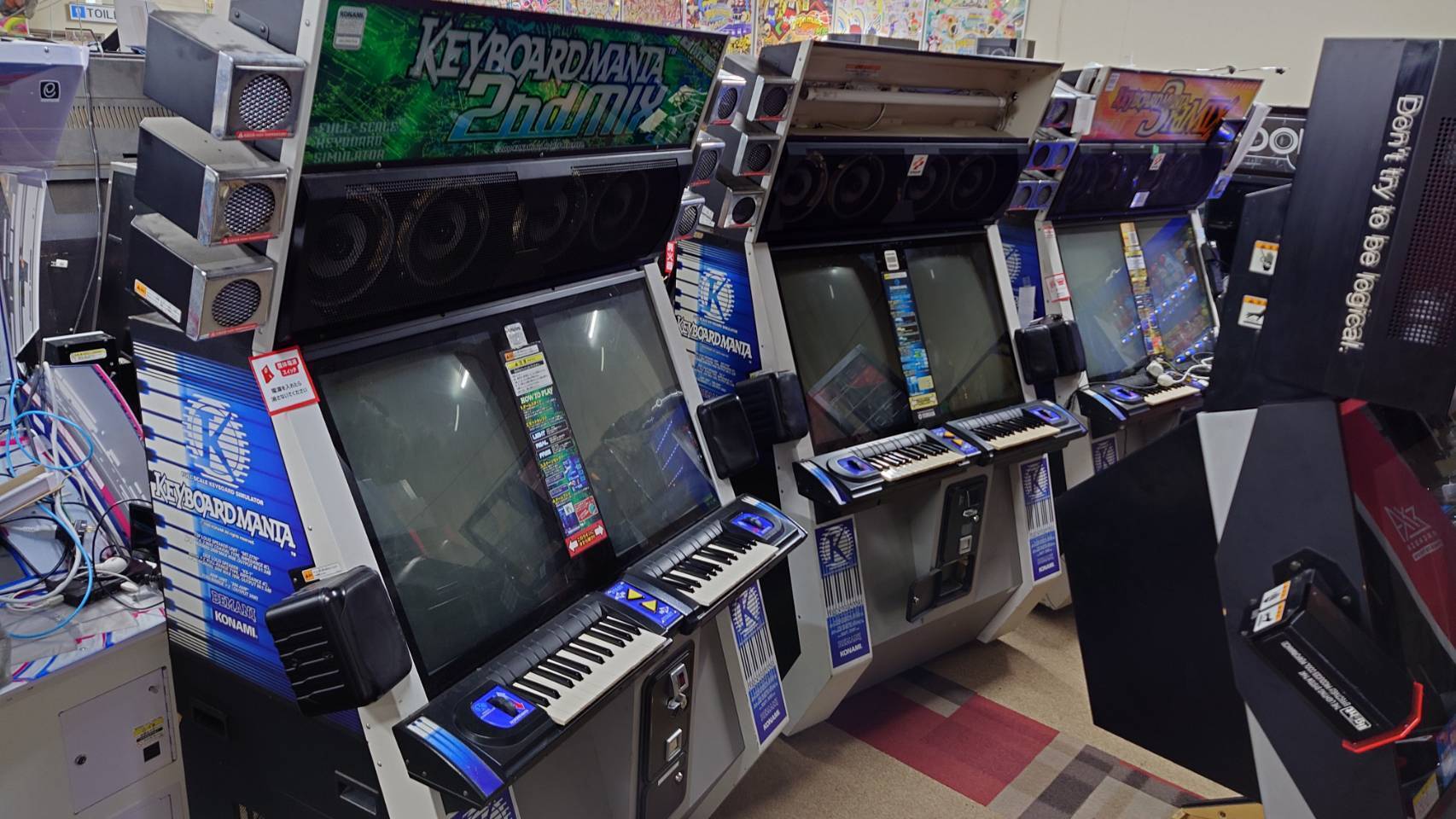 キーマニが3台。また一つ夢がかないました。①KEYBOARD HEVEN韓国版のキーボードマニア②KEYBOARDMANIA 2ND MIX日本版2作目のシリーズ。空打ちでグッとゲージが減るのでとても難しい。③KEYBORDMANIA 3RD MIXゲージの減る方がマイルドになり遊びやすくなったシリーズ。キーボードマニアは演奏感があり、とても楽しいゲームです。ご来店したら是非遊んでみてください。基板が世に出てから20年以上経過しているレトロゲームです。修理にも資金がかかり、30年後も動かすつもりで運用しておりますが、いつ故障してもおかしくありません。旧作は遊べるうちに遊びましょう。