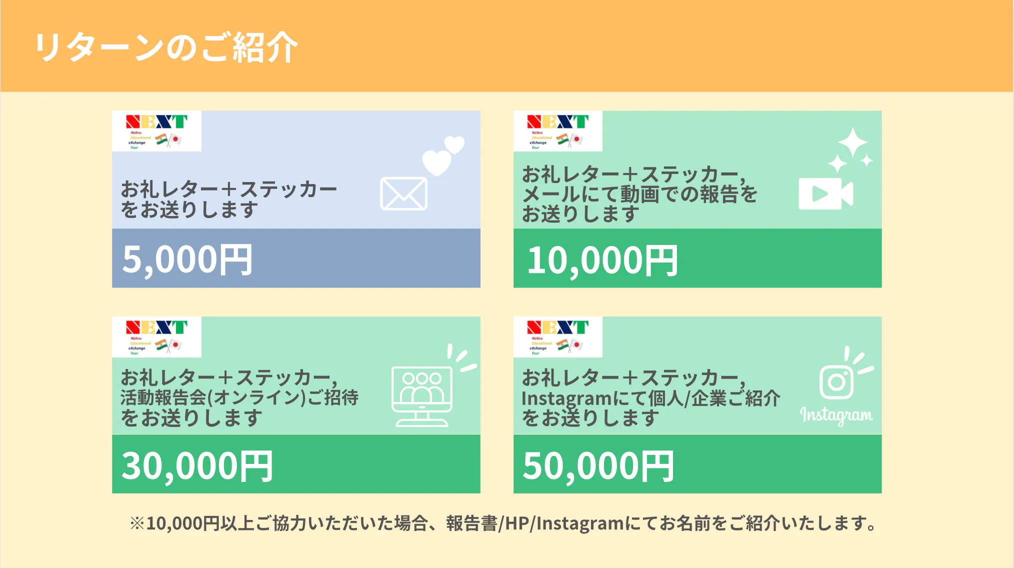 Because this is a one-of-a-kind activity, we would like to make the Indian students' trip to Japan a reality and show the world the power that is generated when the youth of Japan and India join forces.