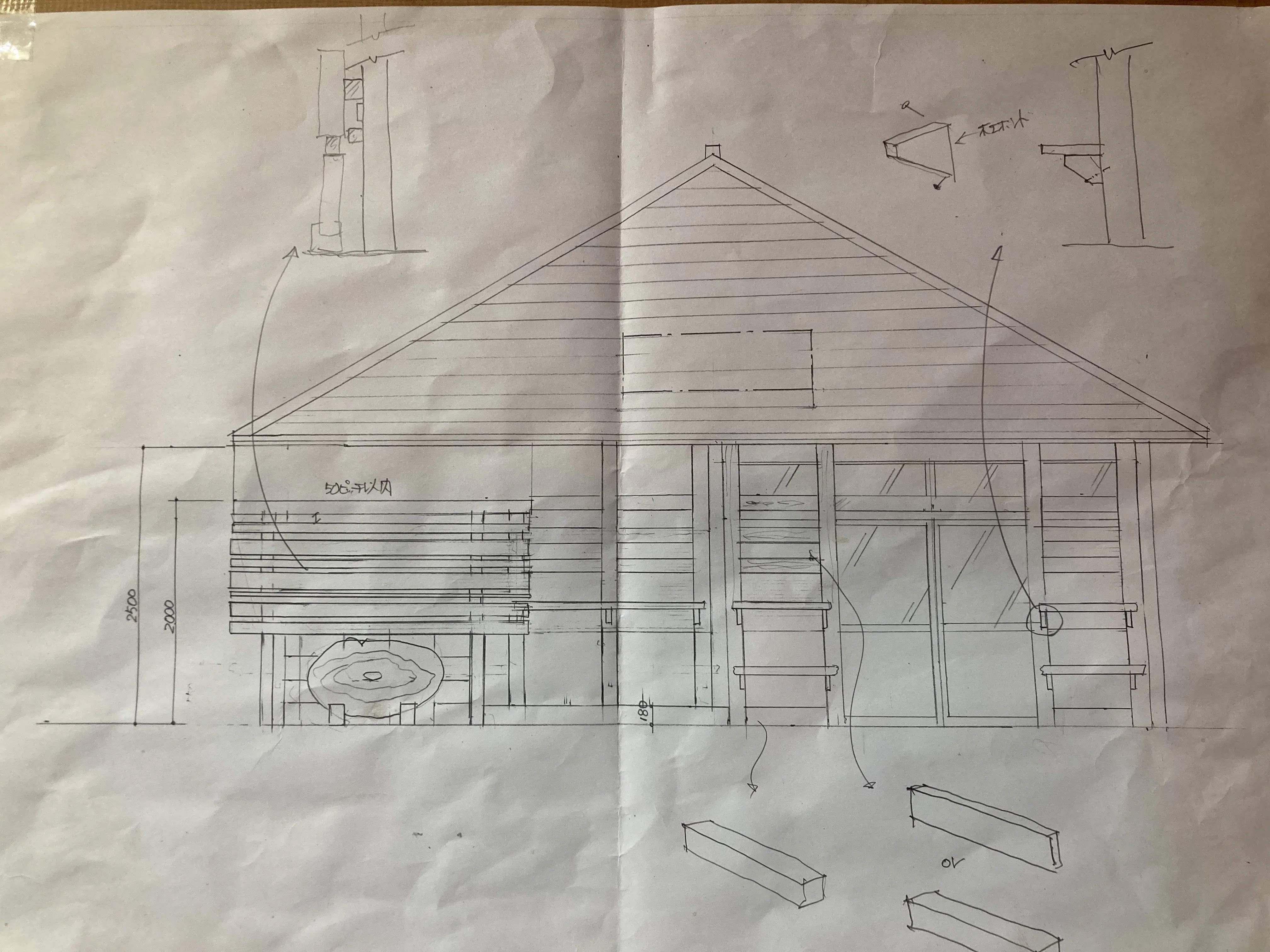 前回の旅館の際に1日だけ来てもらいファサードのパースを描いてくれた工務店の社長、宮川さんに再度頼ることにしました。