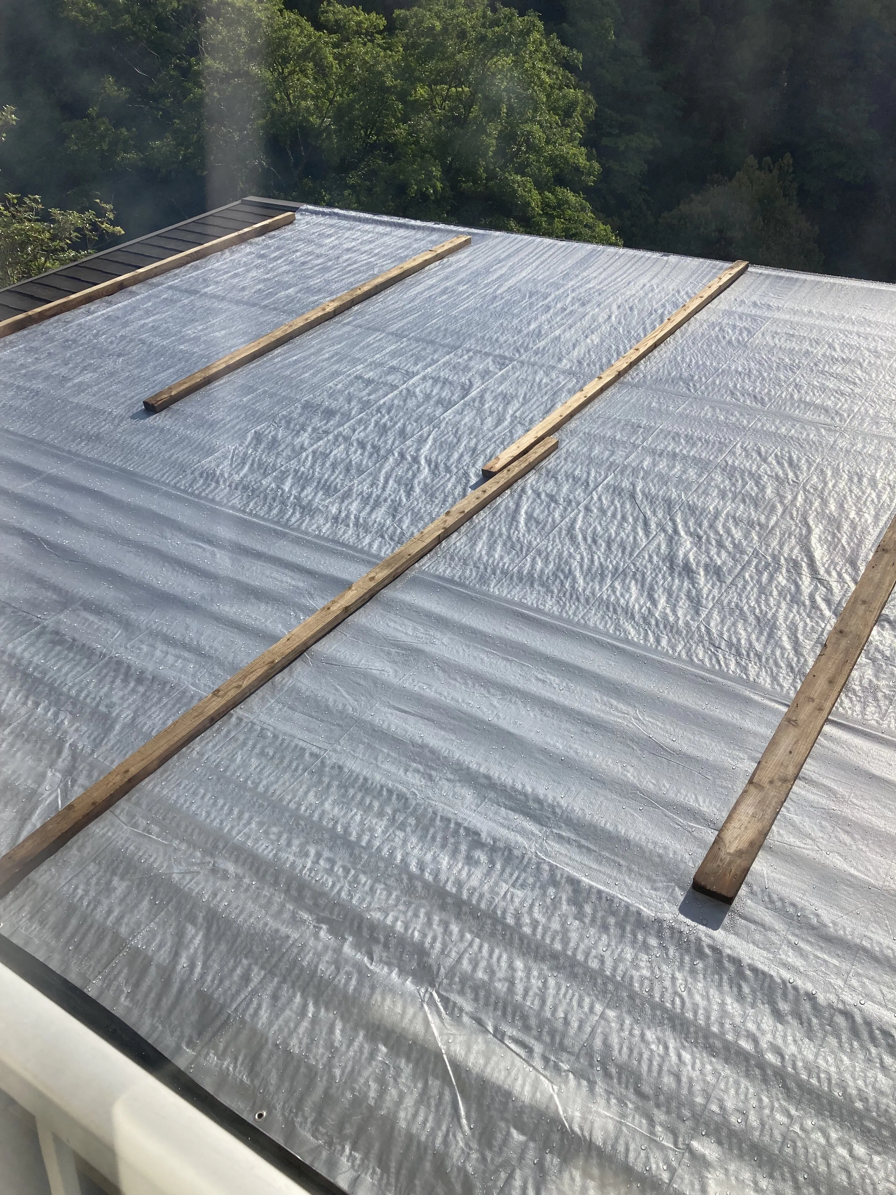 すっかりと腐敗して手で穴が開く防水効果の無い屋根。