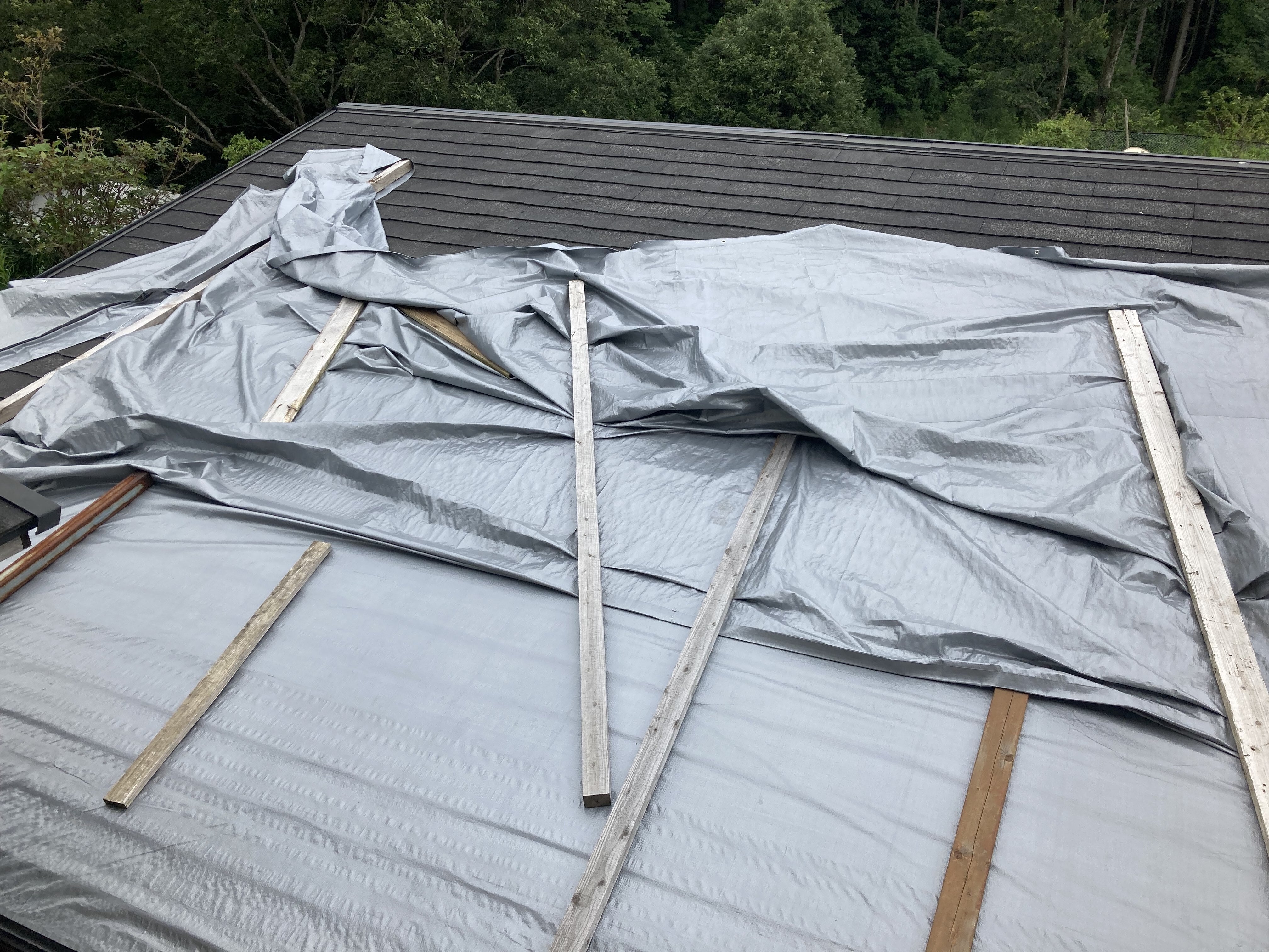 ※写真は、現在の課題の屋根部分。風でカバーが外れていますが、これ、台風ではなく先日の大雨&強風でなりました。明日には復旧しておかないと台風で全部飛びそうです。めげずに頑張ります!屋根のぼり(ここは傾斜が緩やかなので気が楽です)