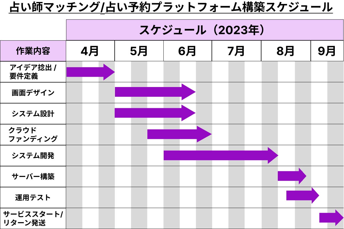 ・2023年9月初旬 占い師マッチング/占い予約プラットフォームのリリース、リターン発送予定