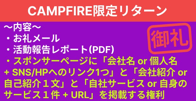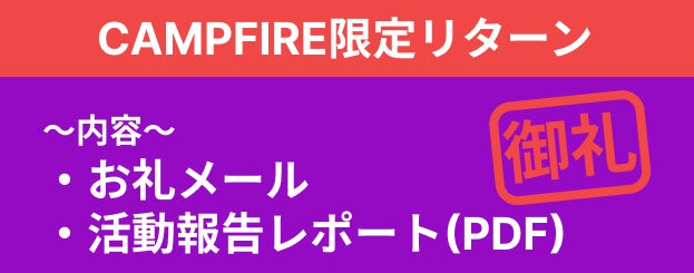 本プロジェクトはAll-or-Nothing方式で実施します。目標金額に満たない場合、計画の実行及びリターンのお届けはございません。