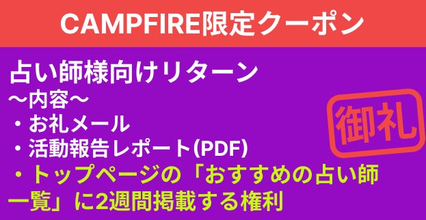 ・20000円:占い師様向けリターン【限定50名様】