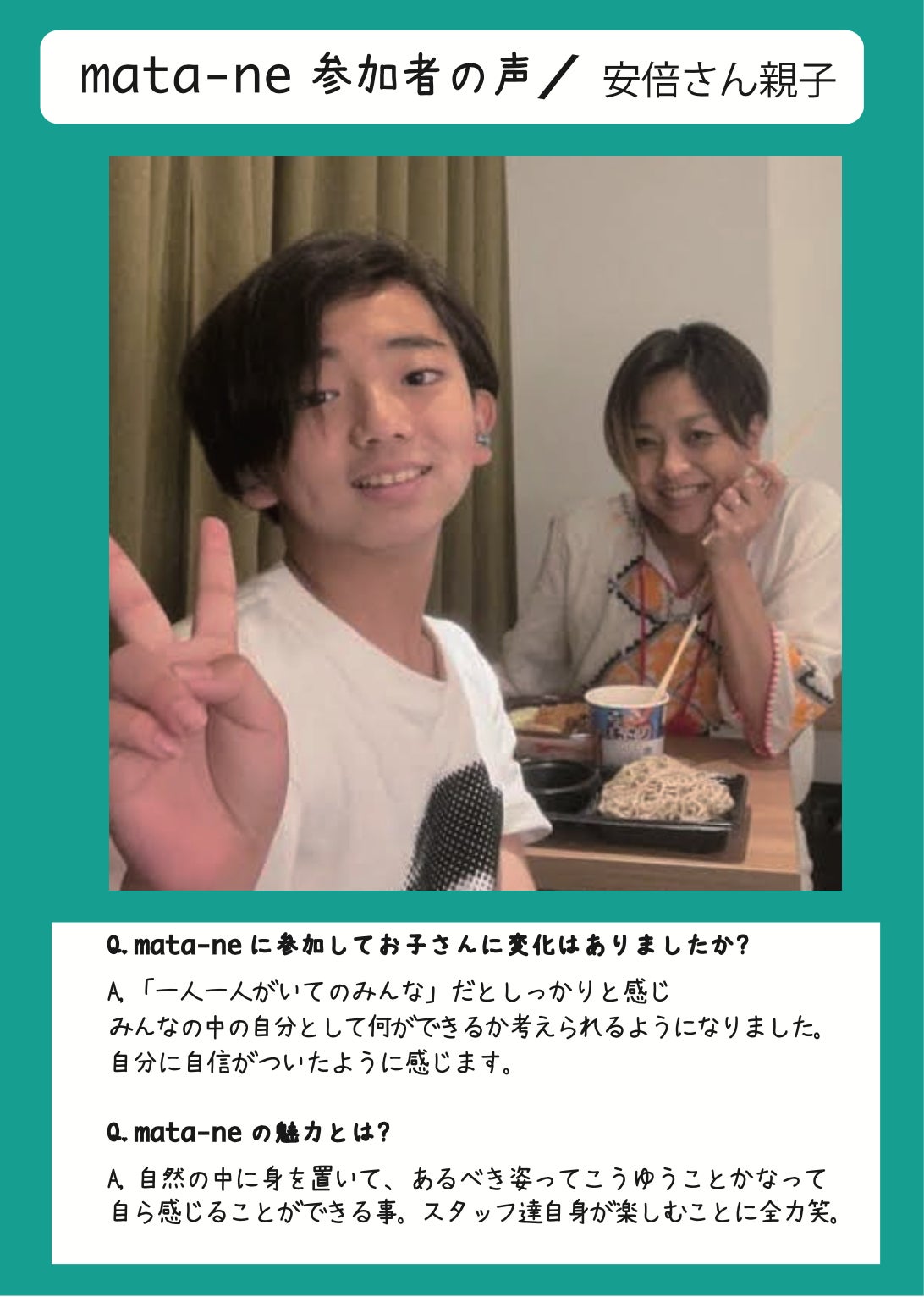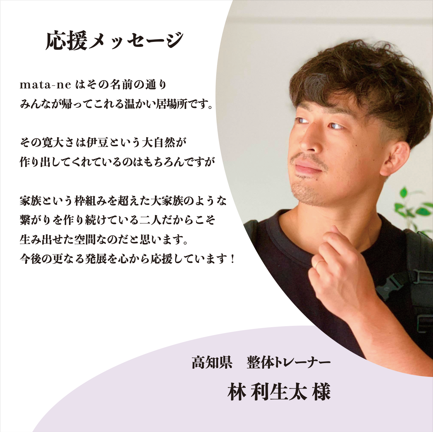 そしてmata-neに関わる全ての方にとってmata-neが第二のふるさとの様に 「ただいま」 と安心して帰ってこられるみんなの「ふるさと」になればと思っております。ご賛同いただける方は SNS でのシェア、拡散や周囲の方へのご紹介等ご協力いただき、ぜひ、一人でも多くの方に mata-neのプロジェクトをお伝えいただければと願っております。