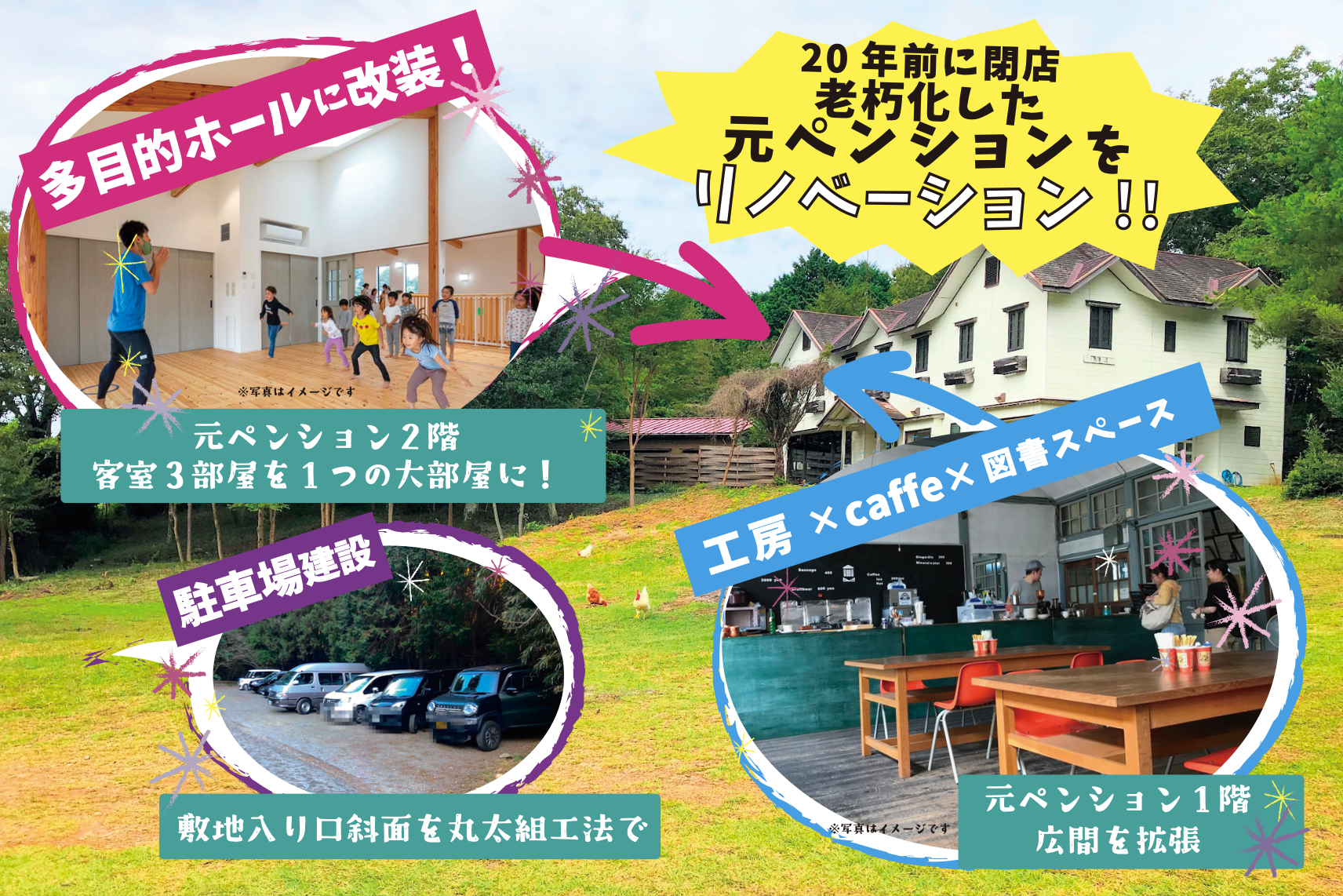 そんな素晴らしい土地に約20年前に閉店した元ペンションが建っています。 今回、クラウドファンディングを行い老朽化した元ペンションを自然体験の地域学習を実施するための拠点となる【環境教育施設】に改修します。