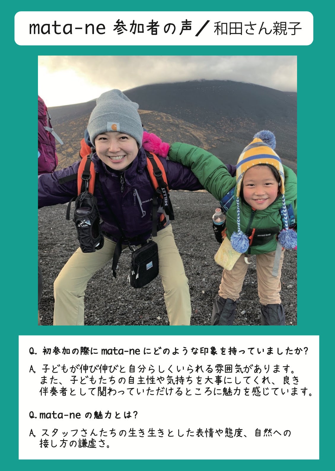 ここまでプロジェクトをご覧になっていただき誠にありがとうございます。最後に私たちは環境教育を通して持続可能な社会づくりに取り組んでおります。また、自然体験等の活動を通して目指している事は1人でも多くの方が mata-ne に関わった事により