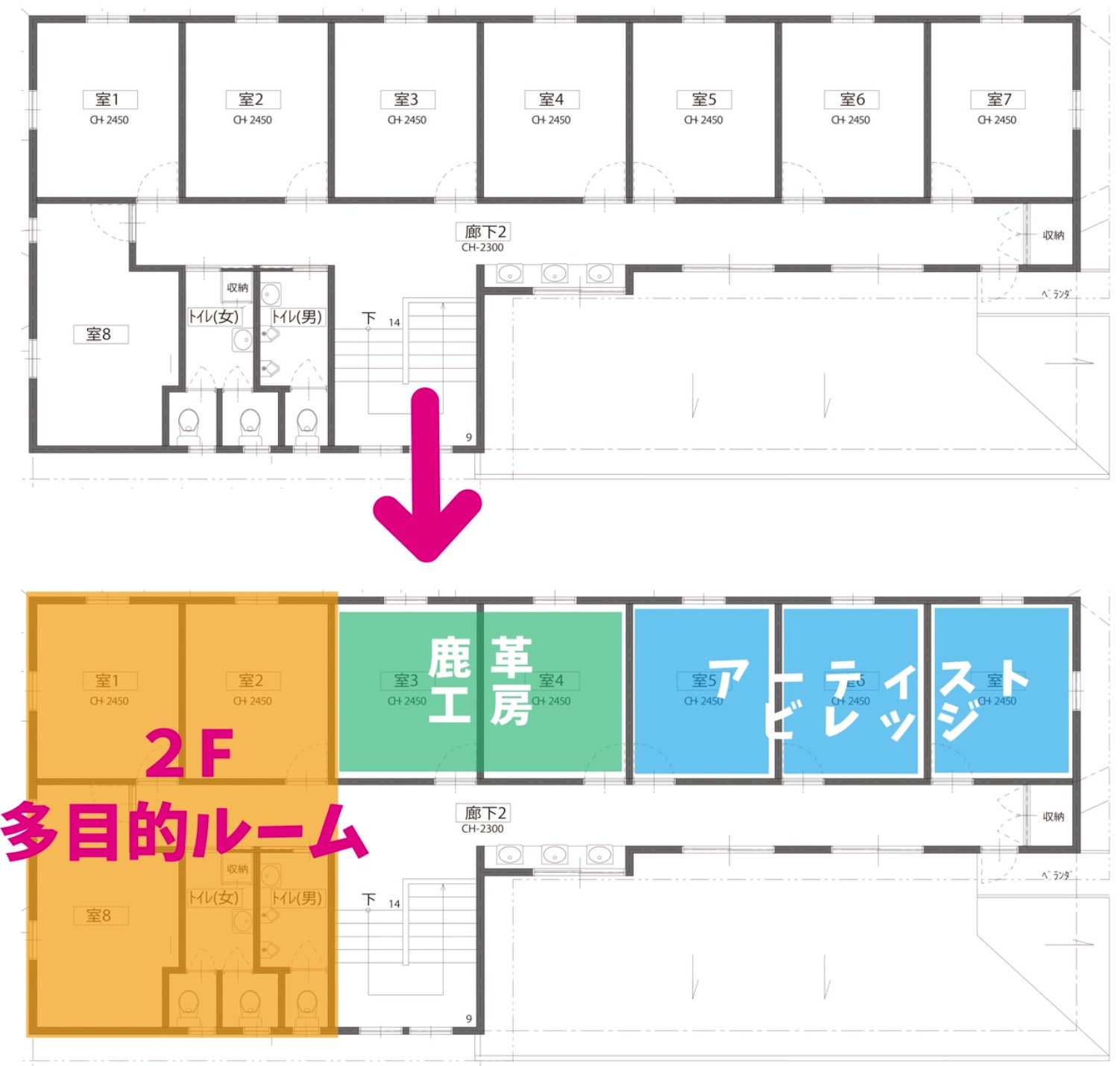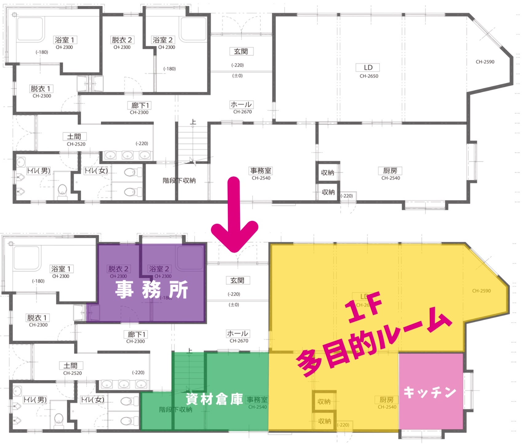 また、現在の2階が宿泊用の個室となっているため、地域学習が2階でも行えるように2階の一部の壁を取り除くなど、1階と2階の2か所で生徒を受け入れることができる体制を整えたい。