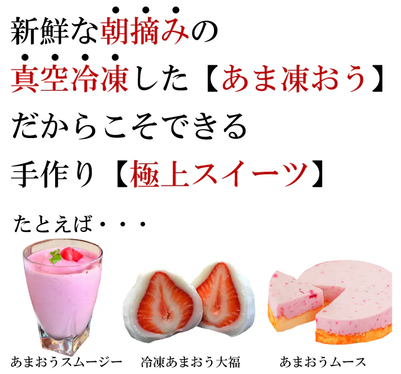 市販ではない、鮮度抜群の冷凍あまおう!味には、自身があります!