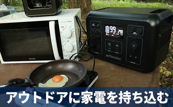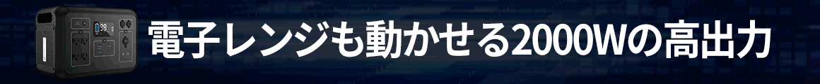 定格で2000Wの出力を誇るため、家電製品で最も出力が高いとされているスチームオーブンレンジ(約1800W)も動かすことが可能です。