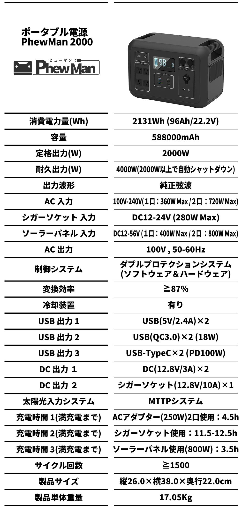 まず最初に、PhewMan2000は2131Whでありますが実質電力効率が85%以上となりますので、