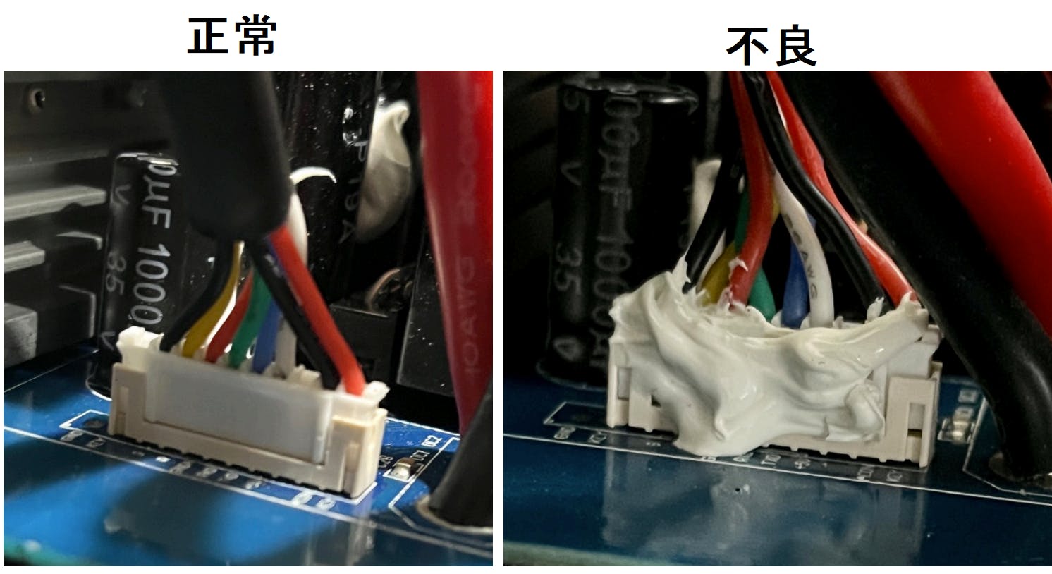 自社で分解・解析を行った結果、内部の基盤やコネクタに不具合があることが判明しました。