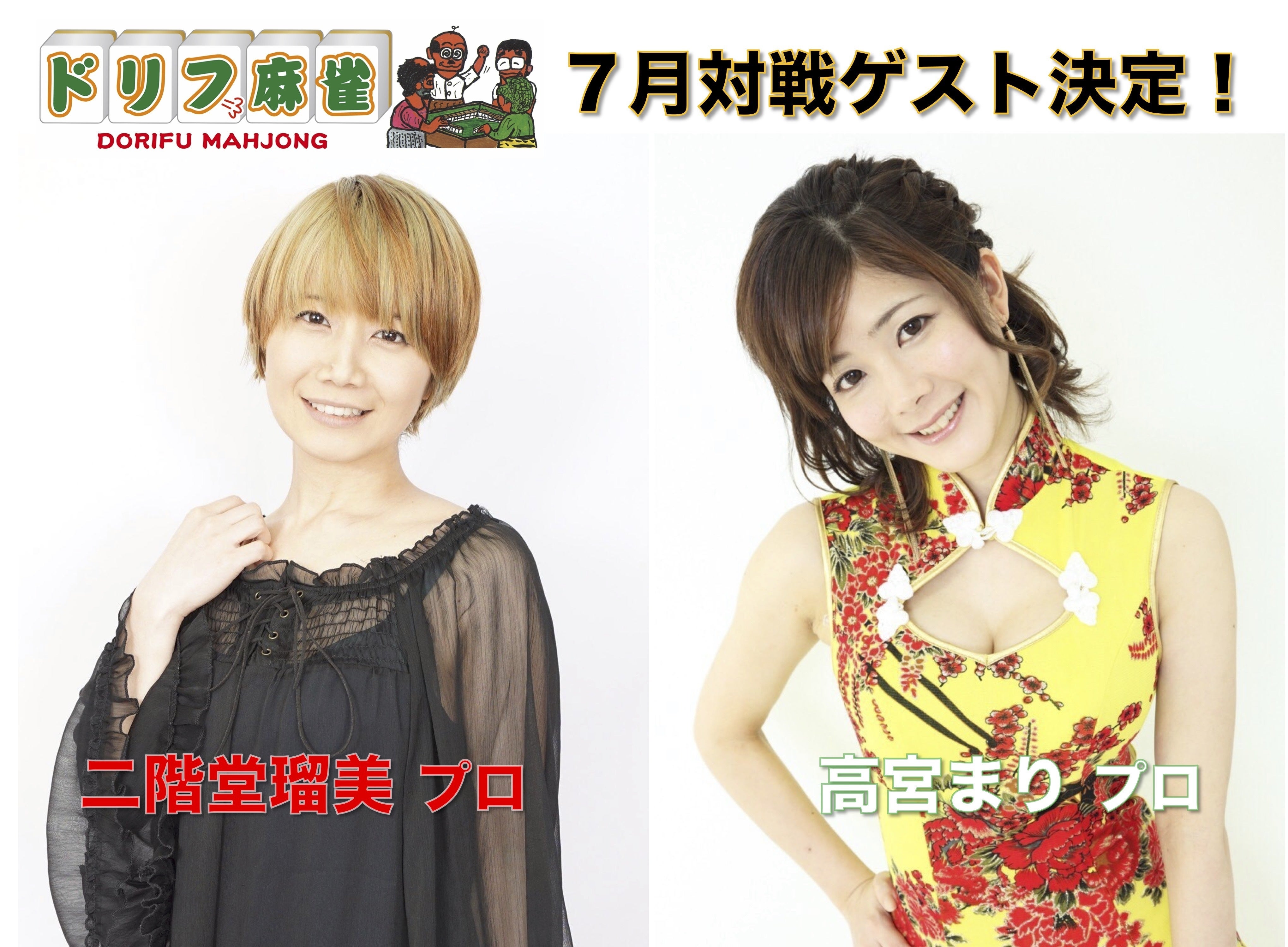 7月対戦ゲストが、 高宮まり さん、二階堂瑠美 さんに決定!