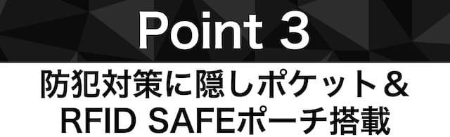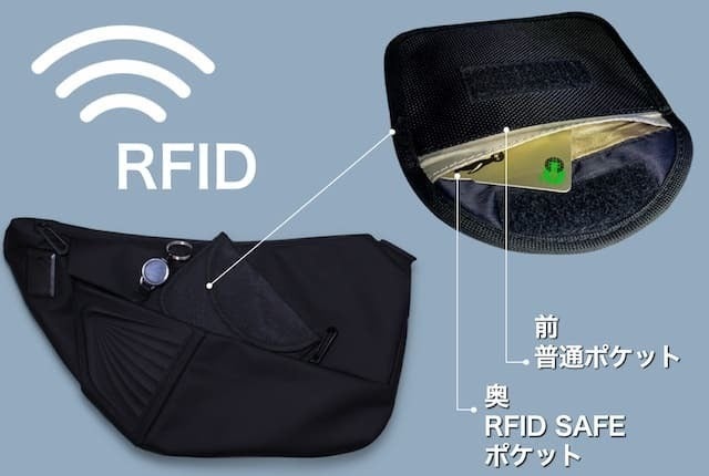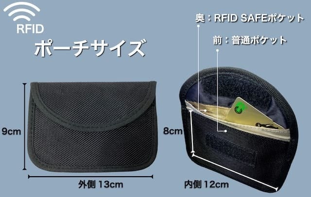 RFIDポーチは2ポケットあり、手前が普通のポケット、奥はRFID SAFEポケットです。
