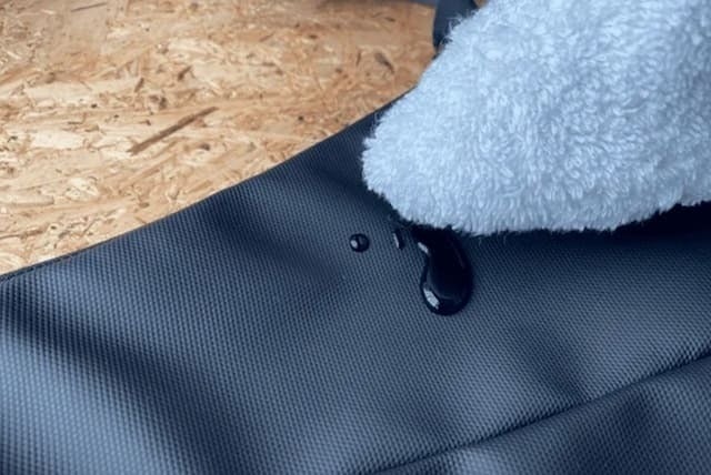 A:完全防水ではない為、大量の水に濡れたりするとファスナーなどから内側に水が染みることがあります。